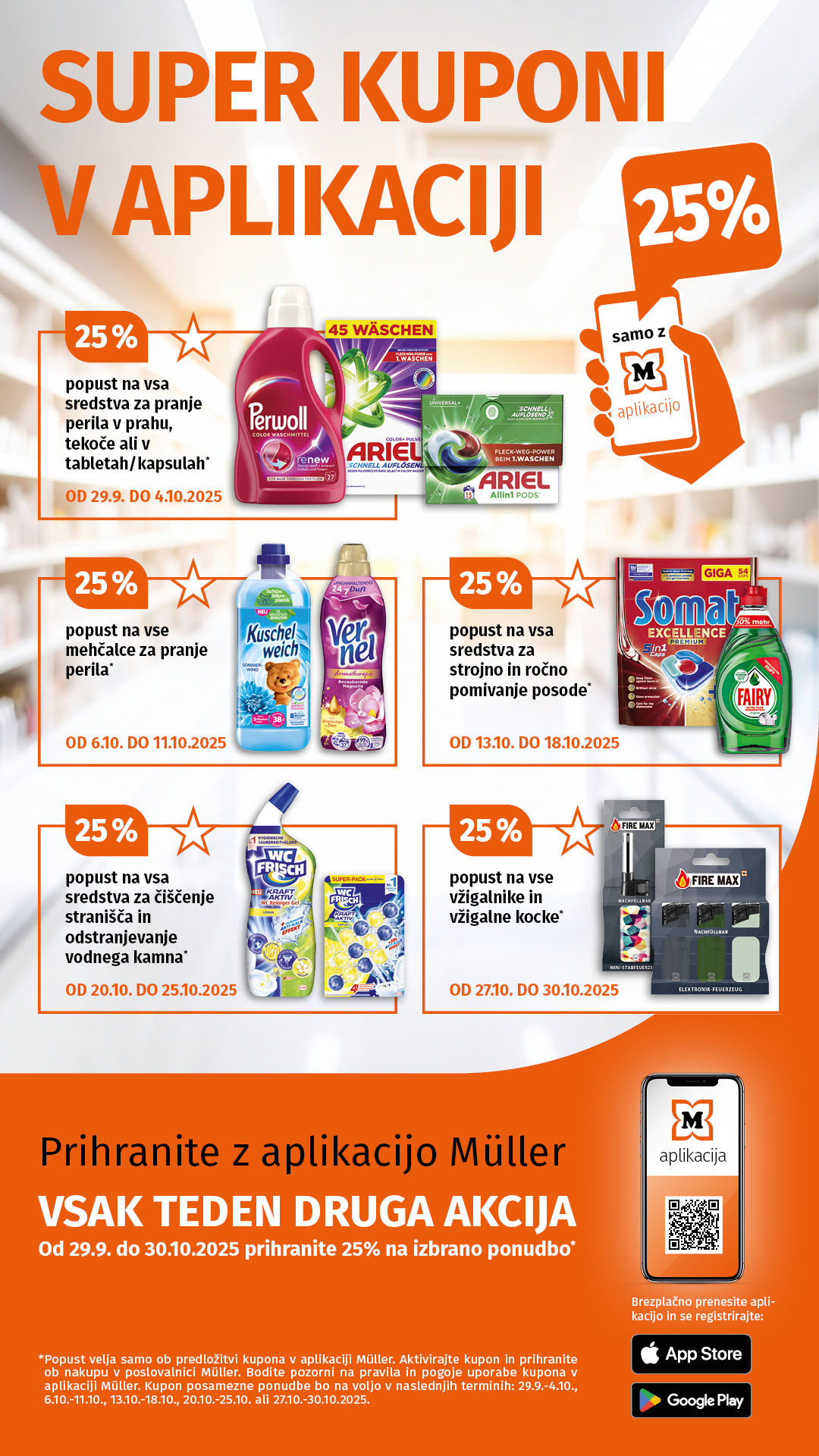 **Popust velja samo ob predložitvi kupona v aplikaciji Müller. Bodite pozorni na pravila in pogoje uporabe kuponov v aplikaciji Müller.