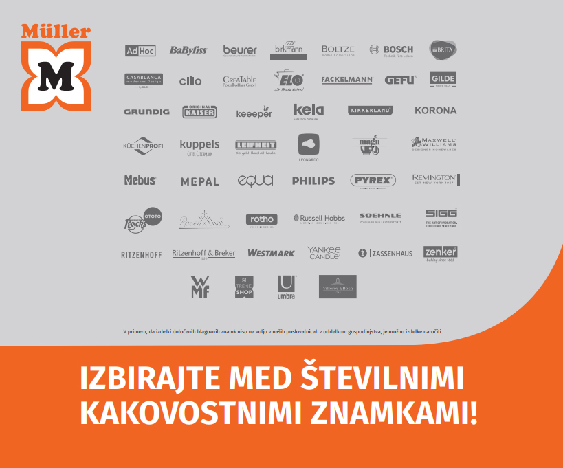 *Popust velja samo ob predložitvi kupona v aplikaciji Müller. Bodite pozorni na pravila in pogoje uporabe kuponov v aplikaciji Müller.